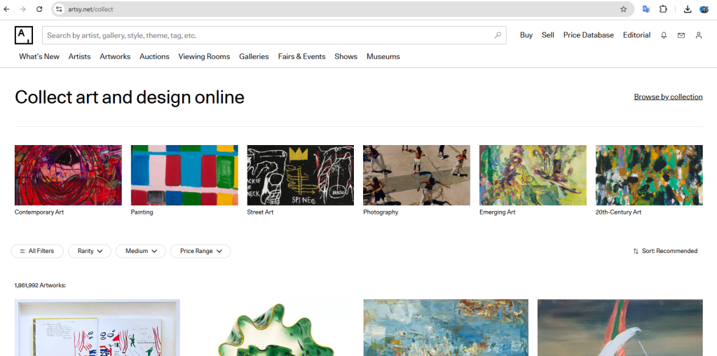 “As the leading marketplace for art by the world’s emerging and established artists, we’ve made it easy for new and experienced collectors to discover, buy, and sell art—and so much more. Everything you’ll ever need to collect art, you’ll find on Artsy.”
